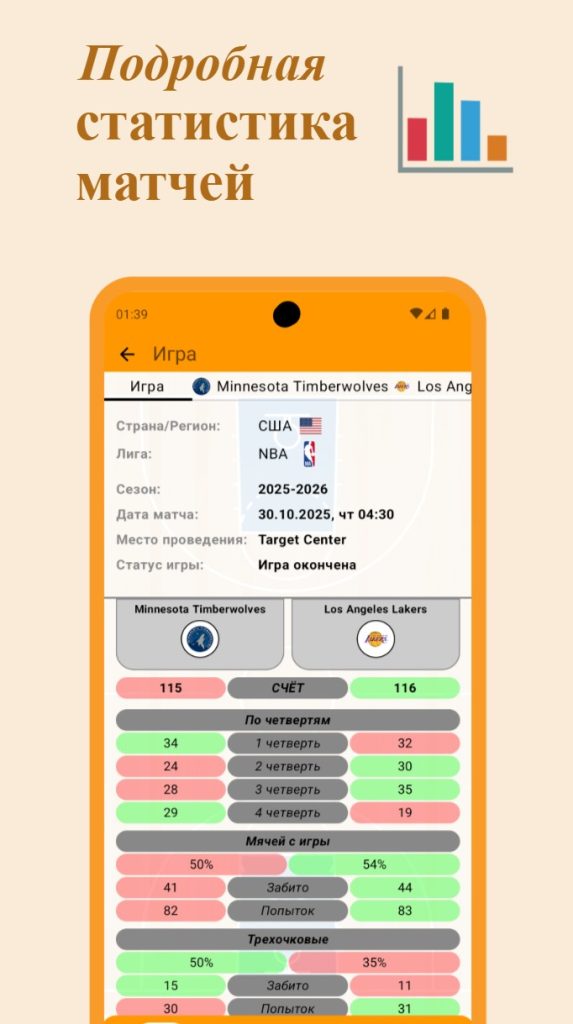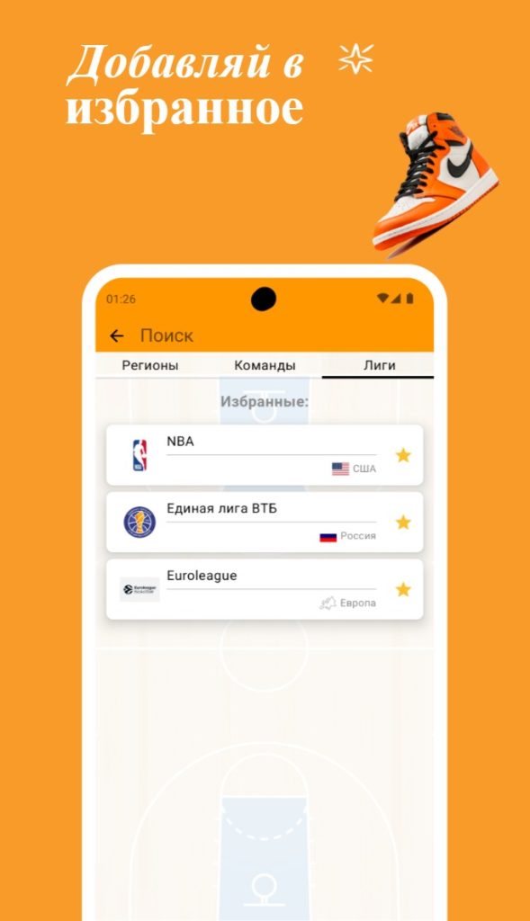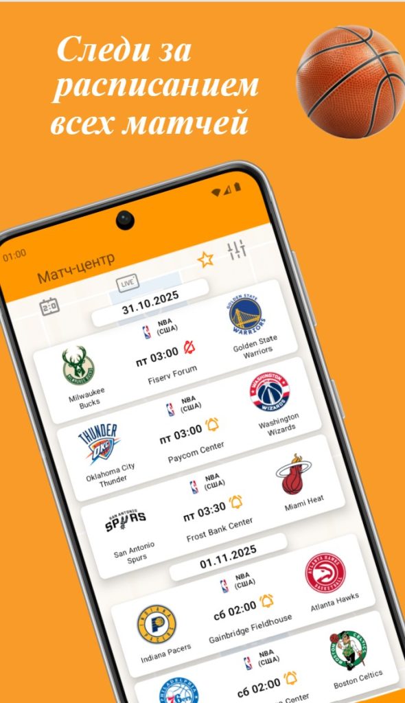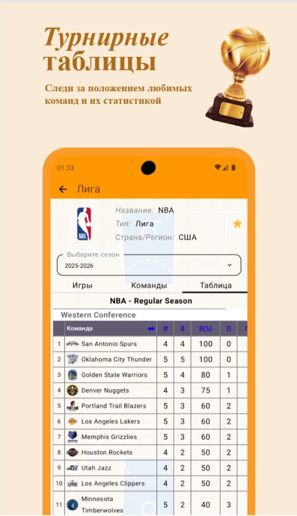 Мобильное приложение для фанатов баскетбола, которое предоставляет возможность легко и удобно просматривать статистику и расписание баскетбольных игр любой лиги мира.